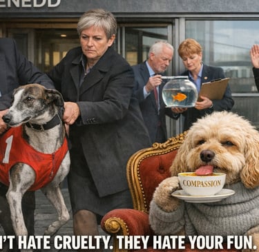 But they won’t, because that would require consistency, and consistency would lead them somewhere appalling: to the pet shop, the breeder, the cat flap and the middle-class sofa. It would require them to admit that they do not, in fact, simply hate cruelty. They hate other people’s pleasures. Especially when those pleasures are loud, common, unapproved and enjoyed without a podcast explaining why. So the greyhound goes under the bus, the cockapoo gets a biscuit, and the Welsh political class gets to parade around in the reflective vest of righteousness. Scotland, meanwhile, appears determined to join the same parade, clutching its own whistle and clipboard.
